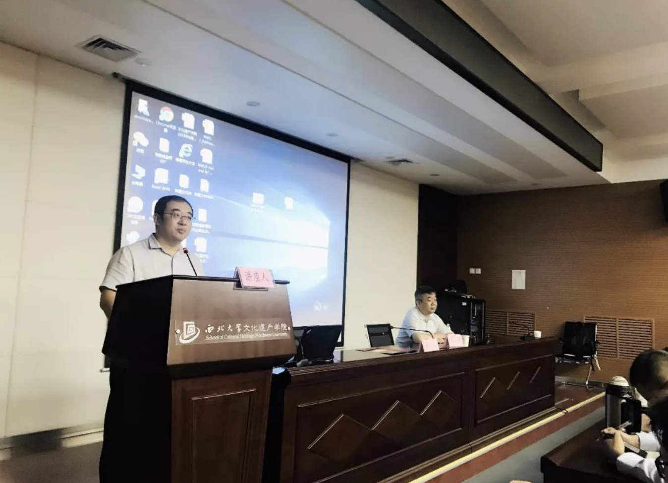 2019年6月22日晚,西北大学中东研究所在太白校区文化遗产学院博望报告厅举办了“名家讲坛”,中国社会科学院美国研究所副所长、党委书记倪峰研究员做了题为“当前中美关系及其走势”的学术报告。报告由校党委常委、副校长常江主持,全校师生百余人参加。