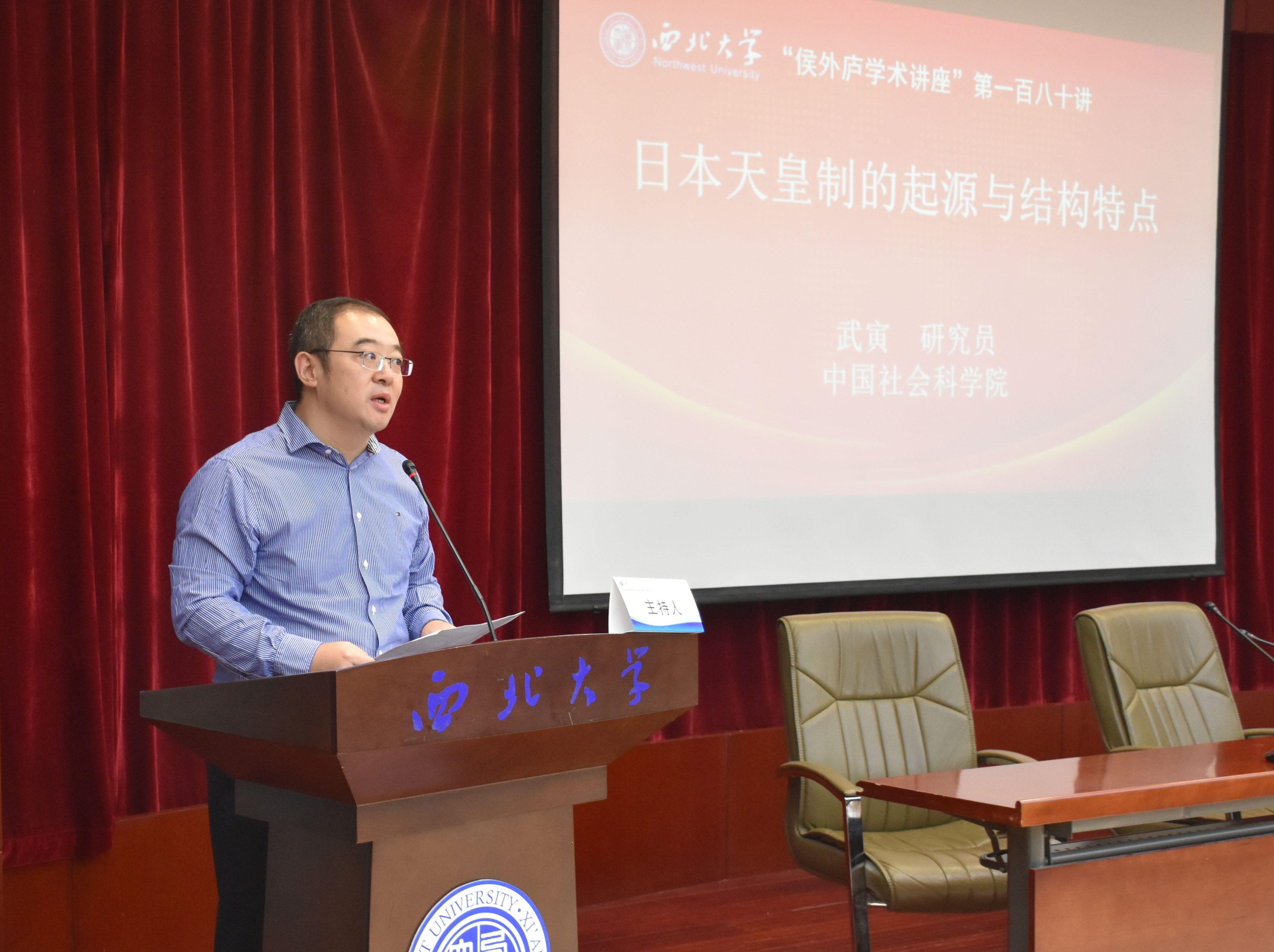 2019年9月15日下午,西北大学中东研究所在太白校区西北大学宾馆多功能报告厅举办了“侯外庐学术讲座”第一百八十讲。中国社会科学院武寅研究员为全校师生带来了题为“日本天皇制的起源与结构特点”的学术讲座,讲座由西北大学副校长常江研究员主持,中东研究所原所长王铁铮教授、所长韩志斌教授、副所长李福泉教授和全校师生200余人参加。