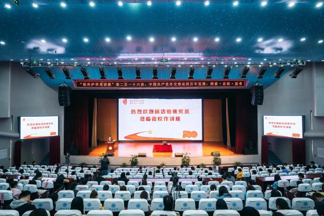 4月13日下午,上海国际问题研究院学术委员会主任杨洁勉研究员做客我校“侯外庐学术讲座”第二百一十六讲,为师生作了题为“中国共产党外交理论的百年发展:探索、总结与思考”的学术报告。报告会由校党委书记王亚杰主持。相关学院师生代表300余人听取了报告。