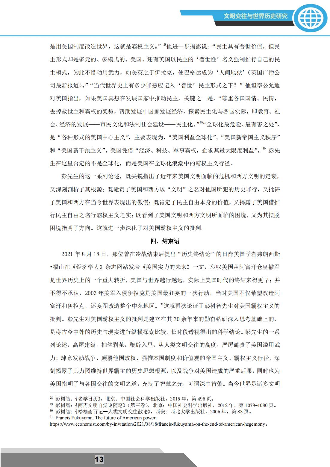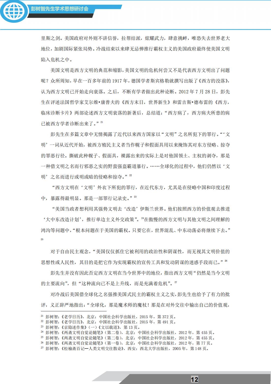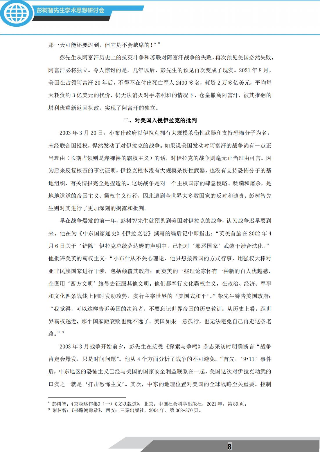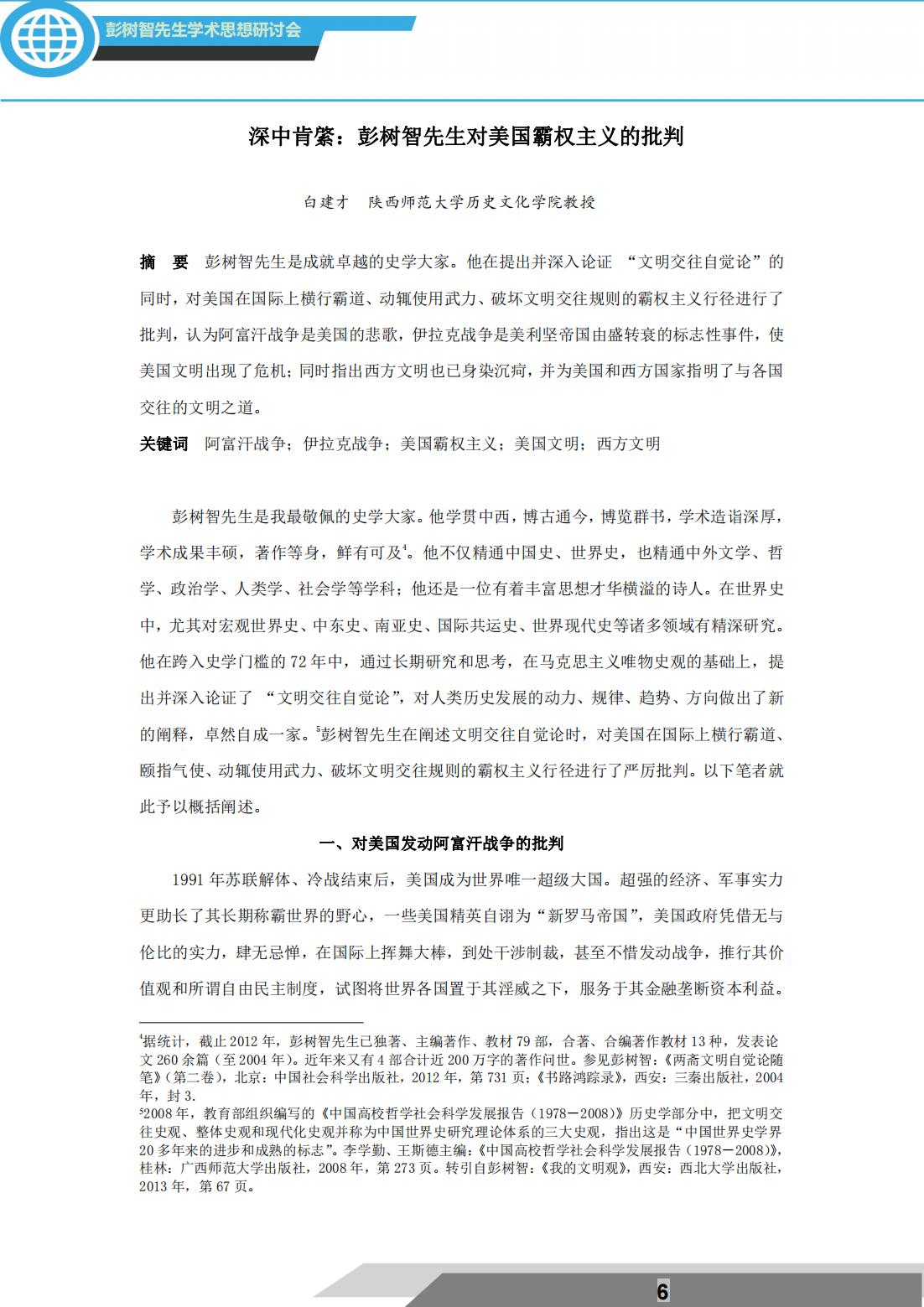 2021年12月18日,由西北大学中东研究所主办的“文明交往与世界历史研究”彭树智先生学术思想研讨会通过线上形式隆重举行。主旨发言环节,陕西师范大学历史文化学院白建才教授作了题为:“深中肯綮:彭树智先生对美国霸权主义的批判”的精彩发言。该环节由西北大学叙利亚研究中心主任、西北大学区域国别与翻译研究院院长王新刚教授主持。