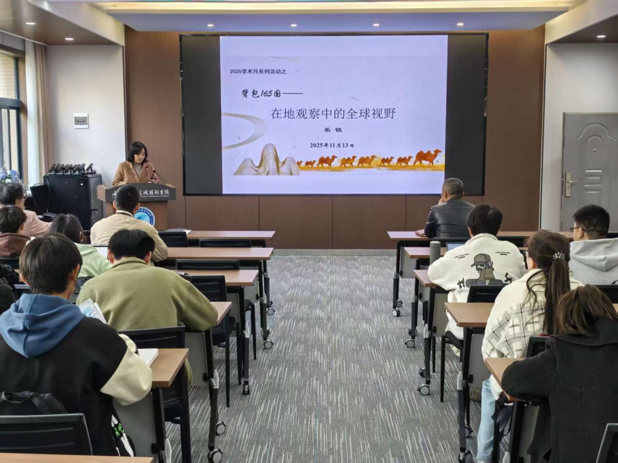 2025年11月13日下午,西北大学宗教造型艺术研究所所长、西北大学岳钰佛教美术馆馆长、教授、硕士生导师岳钰教授应邀在西北大学区域国别学院树人启智报告厅作了题为“背包165国——在地观察中的全球视野”的专题讲座。本场讲座由西北大学区域国别学院直属党支部书记任惠莲主持,区域国别学院副院长李福泉教授、副院长席会东教授参与讨论,学院多名师生听取了讲座并参加互动。