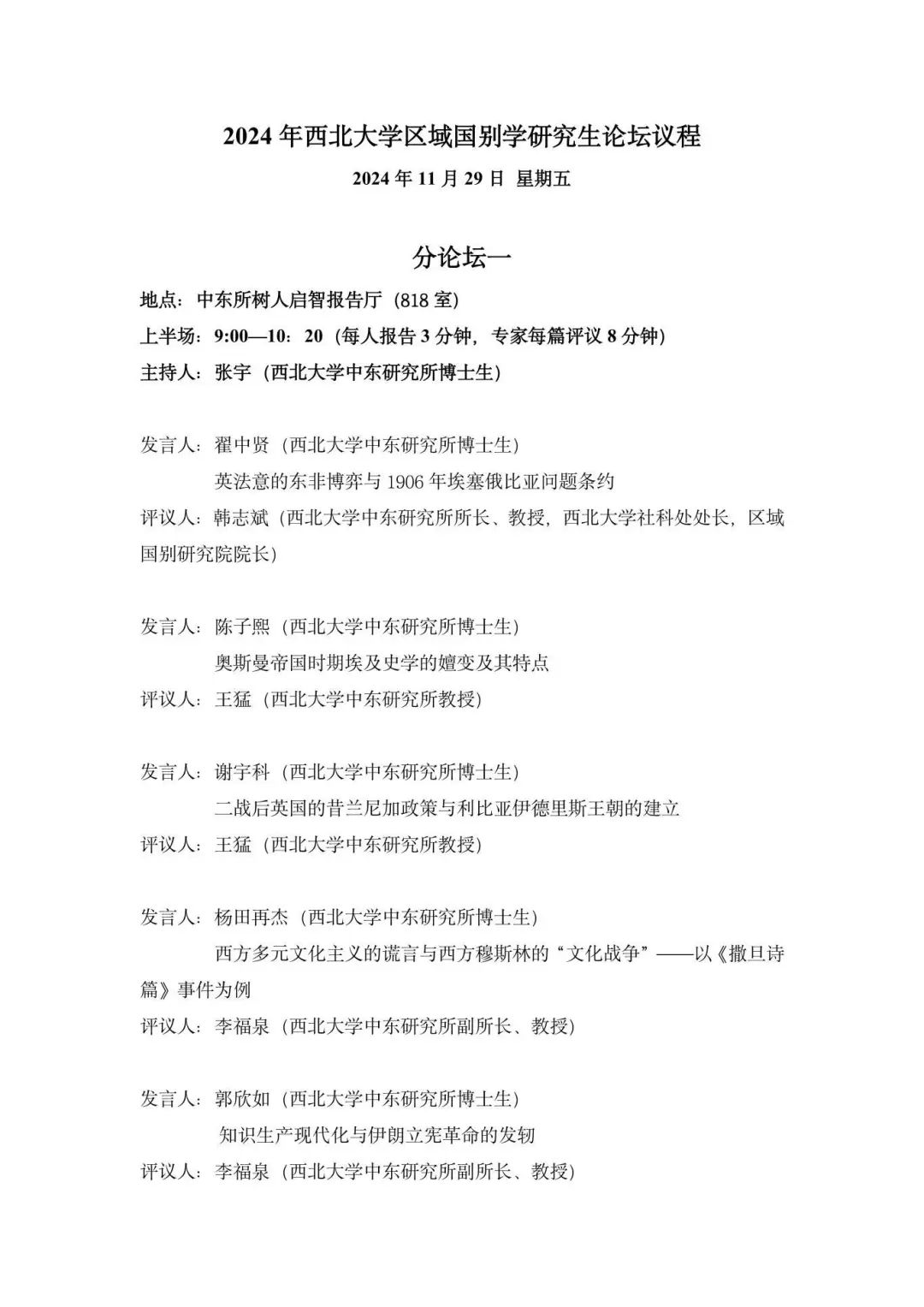2024年西北大学区域国别学研究生论坛议程