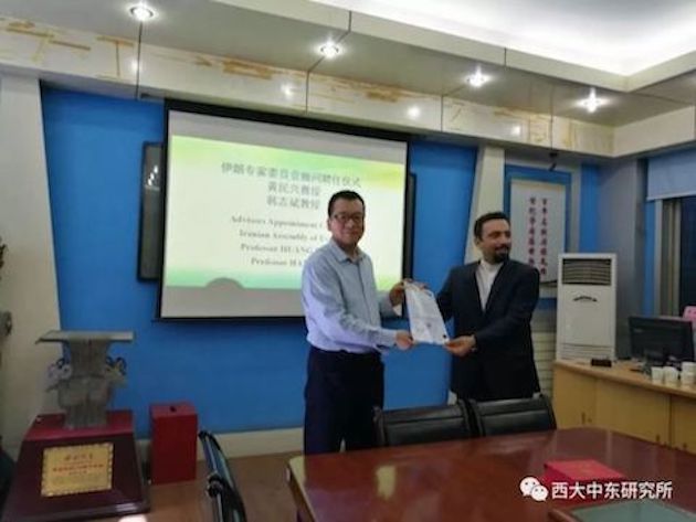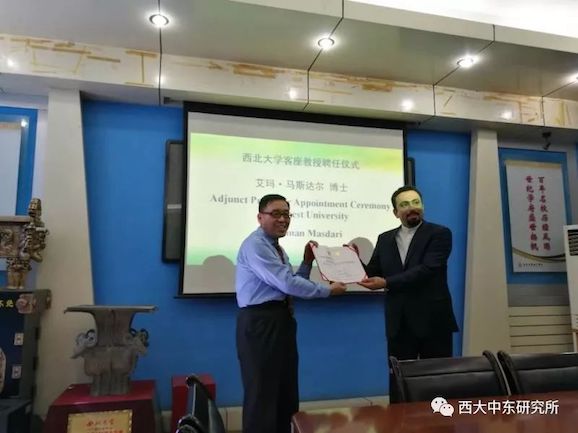 会上,西北大学中东所聘任伊朗专家委员会主席伊玛·马斯达里(Iman Masdari)博士为西北大学客座教授,黄民兴教授向马斯达里博士颁发了西北大学客座教授聘书。同时,马斯达里教授也代表伊方机构聘中东研究所黄民兴教授和韩志斌教授为伊朗专家委员会外籍专家。