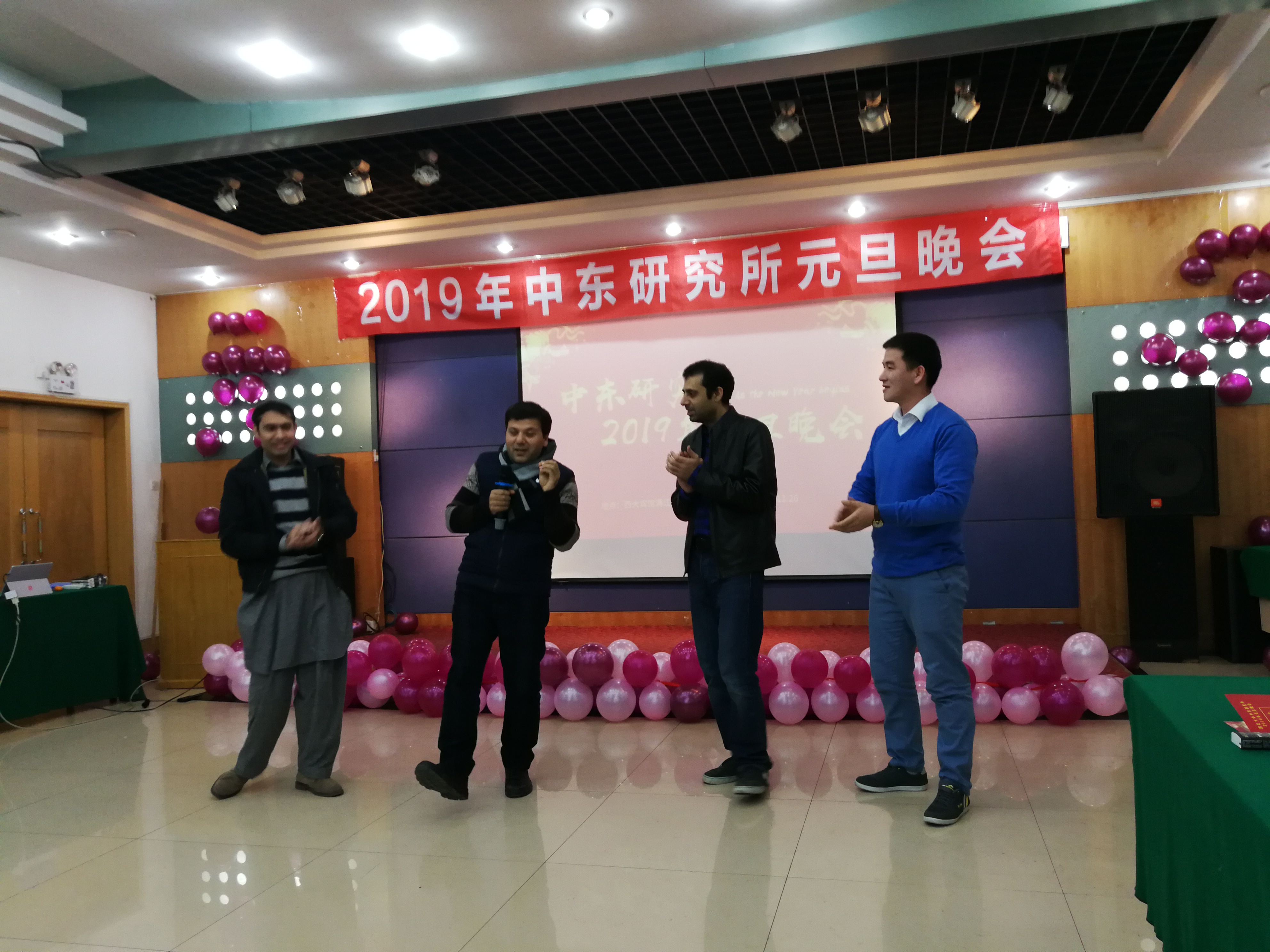 2018年在收获和喜悦中渐渐远去,2019年的钟声也即将敲响。伴随着欢歌笑语,12月26日中东所师生在西北大学宾馆满江红厅举办2019年中东研究所元旦文艺晚会。