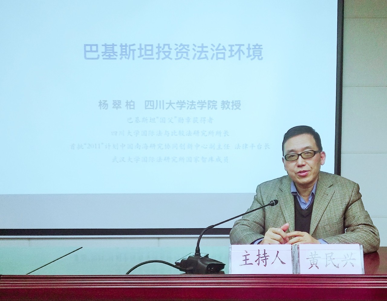 3月24日下午,四川大学法学院杨翠柏教授作了题为“巴基斯坦投资法治环境”的学术报告。报告由西北大学中东研究所黄民兴教授主持,中东研究所师生30余人参加。