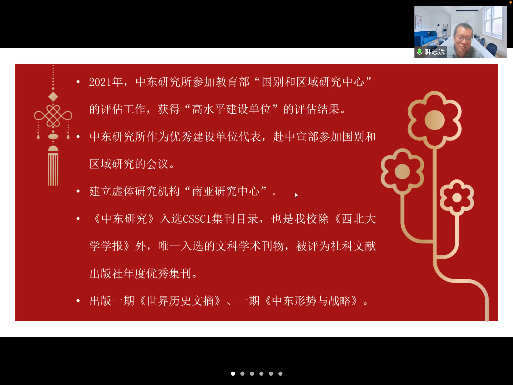 习习春风散阴霾,芸芸万物迎复苏。2021年12月31日晚,西北大学中东研究所隆重举行2022年元旦迎新晚会。因疫情防控要求,本次晚会在线上举行。晚会由张千硕同学主持,中东所全体师生参加。