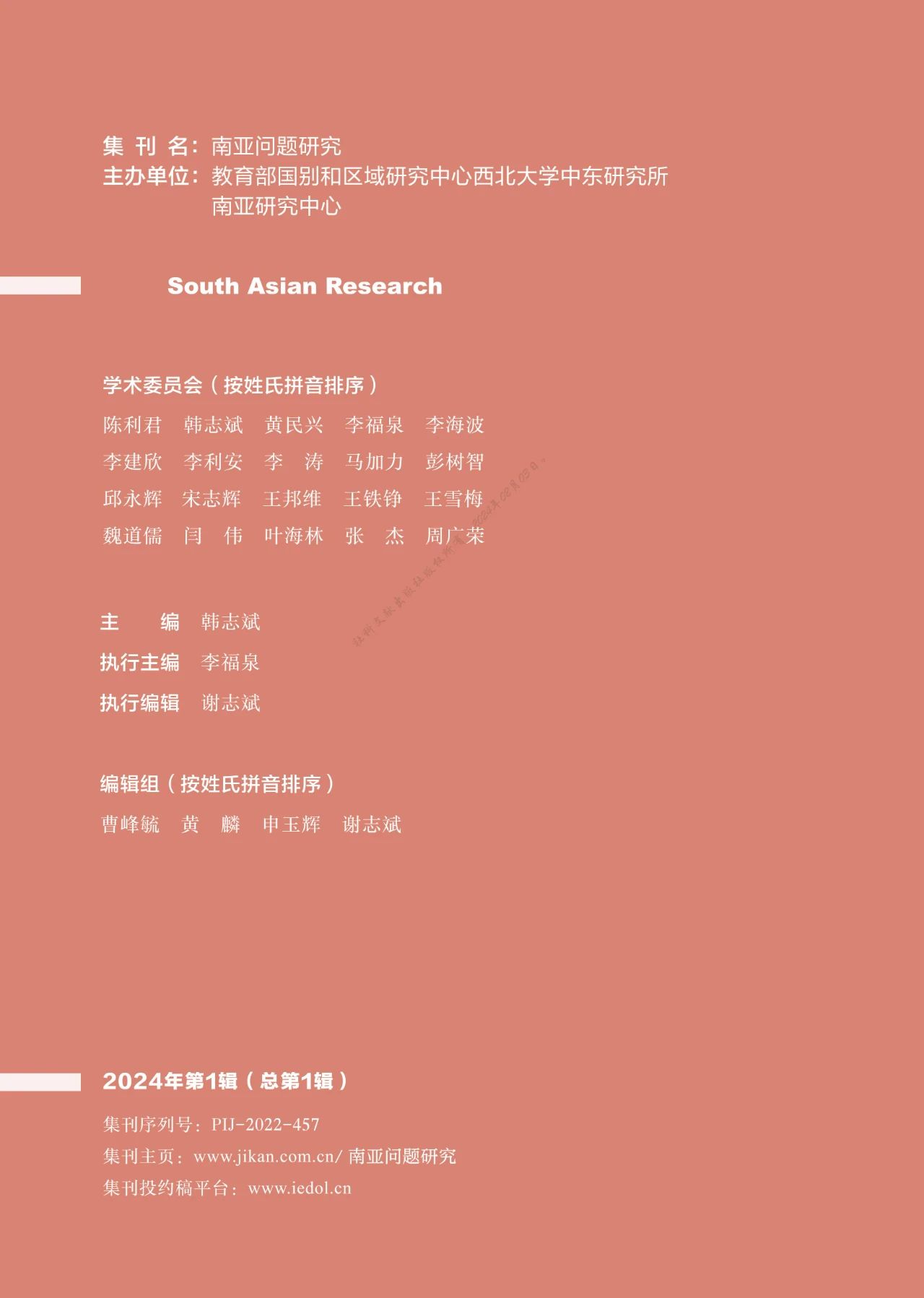 南亚研究具有重要学术意义和现实意义,不研究南亚历史就无法全面、深入理解南亚。《南亚问题研究》将致力于发挥学术界的人才优势和平台优势,积极有效回应国家和地方发展的现实需要,推动我国南亚研究的学术繁荣,助力我国世界史学科建设和国别区域研究的发展。