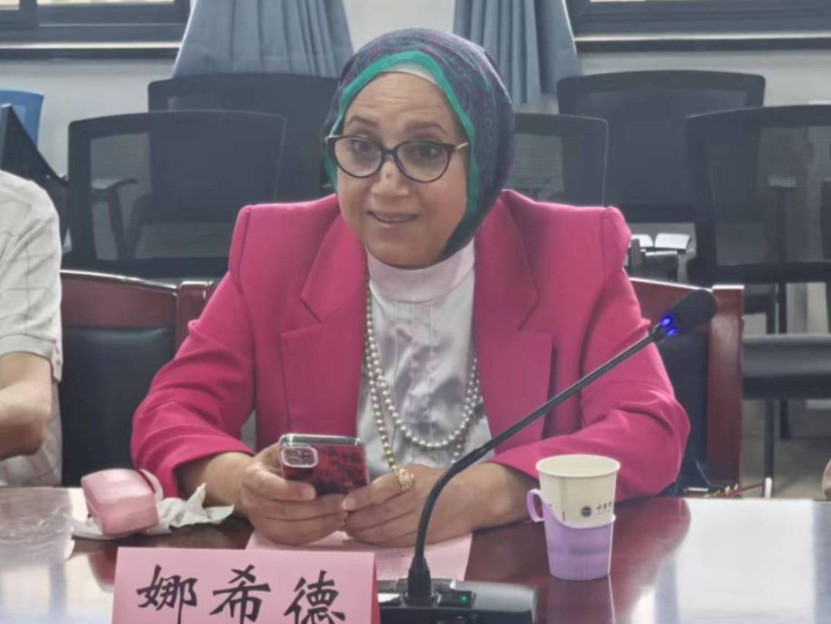 座谈会的第二阶段,邀请了埃及艾因夏姆斯大学语言学院中文系娜希德(Nahed Abdulla Ebrahim)教授发表主旨演讲。娜希德(Nahed Abdulla Ebrahim)教授表示,自己多年以来都从事中国文学翻译工作,并对中国文化怀有浓厚的兴趣。她指出,中国文明与埃及文明之间存在诸多相似之处。两者均为历史悠久的文明,且中阿文明早在古代便通过丝绸之路展开了广泛的交流与互动,其内容涉及文化、科学等多个相关领域。进入近现代时期,阿拉伯与中国的民众通过旅游、朝觐等途径频繁进行自发性和平交流。她亦提及了其博士阶段的导师是首批前往埃及的中国留学生之一。她表示,其导师翻译了众多中文与阿拉伯语书籍,为中华与阿拉伯文明之间的交流作出了贡献。最后她指出,中阿文明之间的交流在当前呈现出内容的丰富性和形式的多样性,同时为全球文明交流树立了典范。