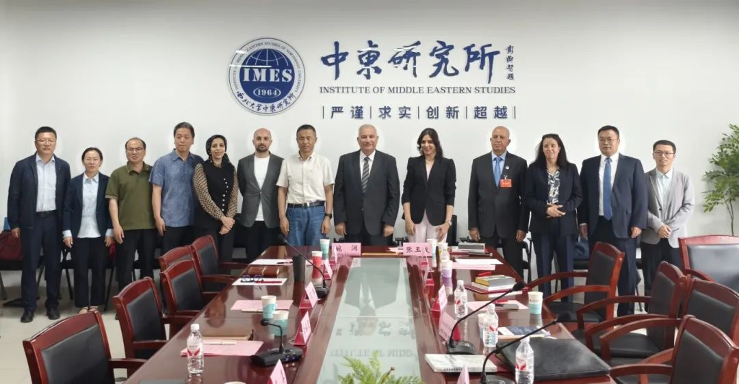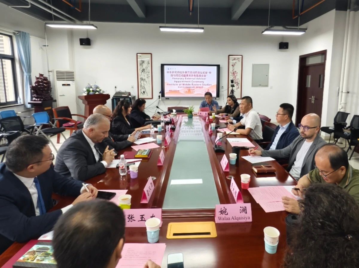 2025年5月22日上午,西北大学中东研究所校外荣誉顾问聘请仪式暨“中国与阿拉伯国家关系研究专题座谈会”在西北大学中东研究所会议室成功举行。聘请仪式由西北大学中东研究所副所长闫伟教授主持。阿尔及尔第三大学政治与国际关系学院伊斯梅尔·德贝什教授,埃及苏伊士运河大学孔子学院院长大海教授,穆罕默德五世大学法律、经济与社会学院(萨莱校区)副院长哈迪加·布特希里教授,埃及开罗大学经济与政治学院伊斯拉·阿杜拉·侯赛尼教授,西安粟栗科技有限责任公司董事长、水电三局国际公司原党委书记、总经理雷汉勋先生,西北大学中东研究所副所长李福泉教授,中东研究所蒋真教授、王猛教授、马韬(Matteo Capasso)教授、李大伟教授、张玉友副教授、婉澜(Walaa Alqaisiya)老师、艾小英老师出席聘请仪式并参与讨论。
