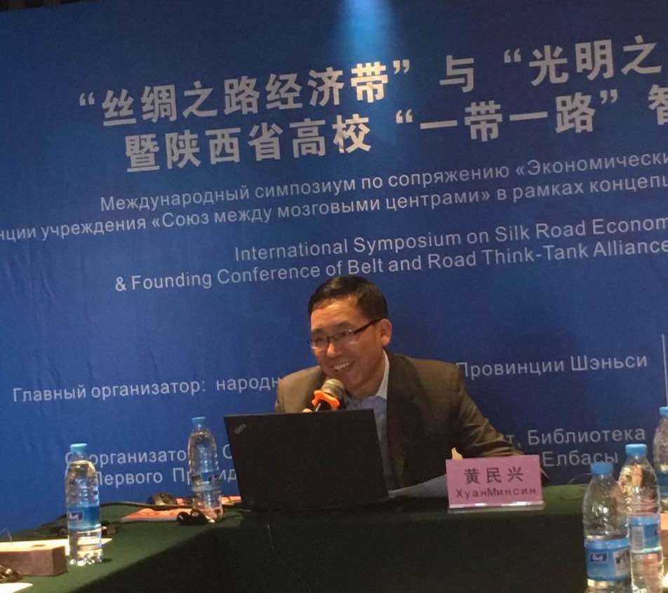 6月7日,由陕西省政府主办,西北大学和哈萨克斯坦首任总统图书馆联合承办“丝绸之路经济带”与“光明之路”对接国际研讨会暨陕西省高校“一带一路”智库联盟成立大会在西安举行。陕西省发展与改革委员会副主任徐强、陕西省教育厅副厅长高晶华、西北大学校长郭立宏、哈萨克斯坦共和国首任总统图书馆副馆长梅伊拉姆•别克吉姆巴耶夫等出席大会并致辞,中哈两国专家深入探讨和阐述了相关问题,中东所所长黄民兴教授发表了《丝绸之路与中哈文明交往》的主题演讲。