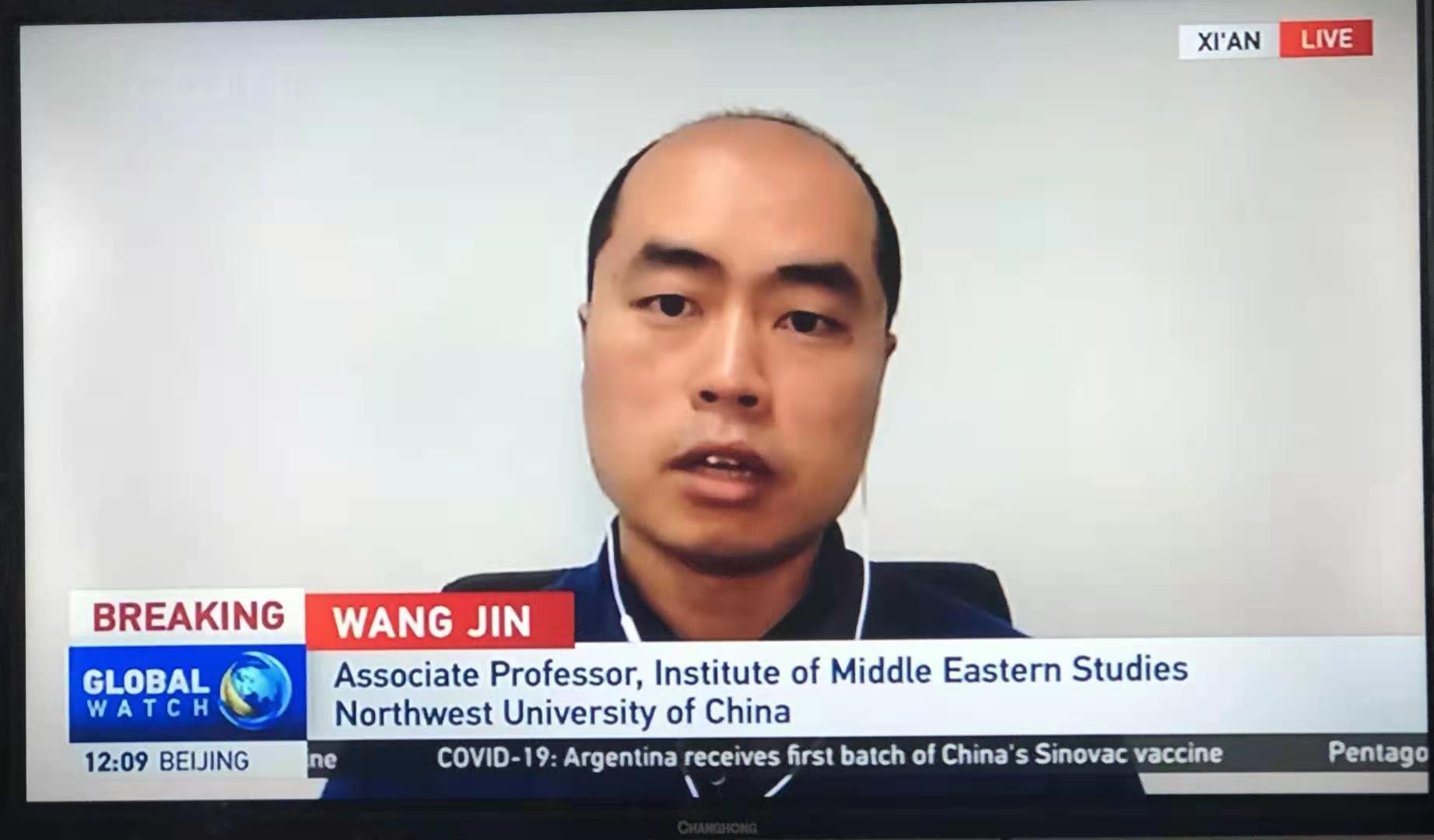 2021年2月26日,王晋副教授就美国空袭叙利亚,分别接受了中央电视台英语频道《环球瞭望》节目和《今日亚洲》节目的采访。王晋认为,美国空袭叙利亚,并非打击伊朗,而是打击伊朗支持的伊拉克民兵组织,而且打击范围有限,打击烈度不高,并不会影响美国和伊朗未来的接触和对话。