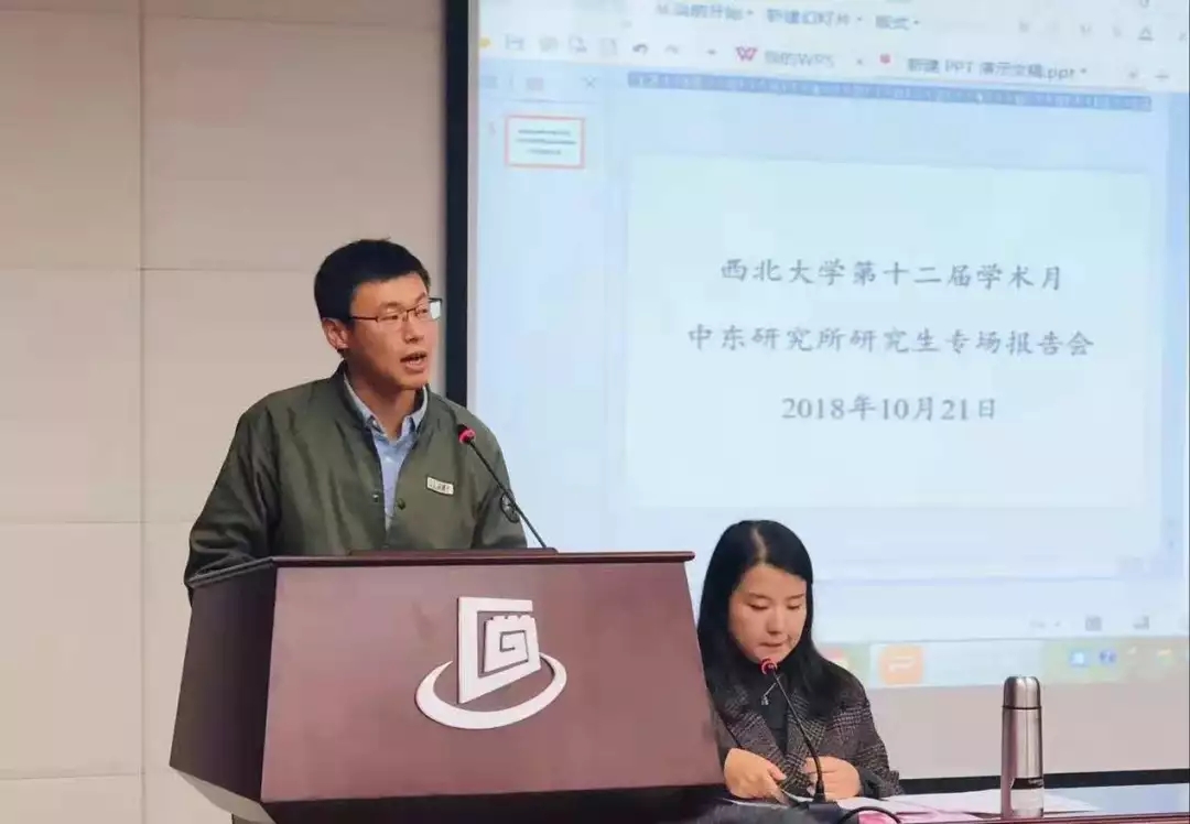 2018年10月21日,中东研究所在太白校区文化遗产学院博望报告厅举行了第十二届学术活动月研究生学术报告会。中东研究所王猛副研究员、刘金虎讲师,中东研究所2017级博硕士和部分2016级、2018级博硕士参加了此次报告会。