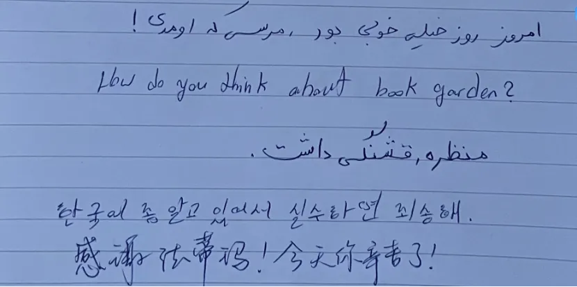 她的语言能力并不突出。她告诉我,由于伊朗开设韩语课程的院校较少,仅有伊朗的韩国大使馆和伊斯法罕大学可供学习,所以大多喜爱韩国文化的伊朗人都是自学韩语。并且,由于在伊朗的韩国人并不多,这些 “韩流” 爱好者很难找到合适的 “语言搭子” 来练习口语。